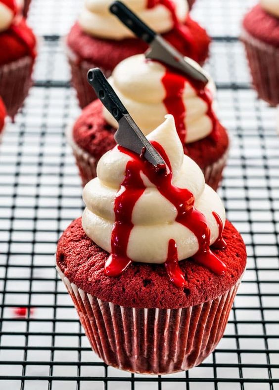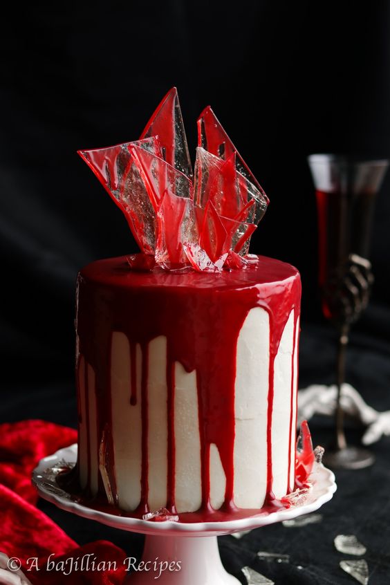 Jeśli chcesz zrobić coś, co wbije wszystkich w fotel, to tort z motywem krwi będzie strzałem w dziesiątkę. Biszkopt, ulubiony krem, a to wszystko pokryte lukrem i czerwoną „krwią” z barwnika. Nie dość, że smakuje, to wygląda przerażająco dobrze!