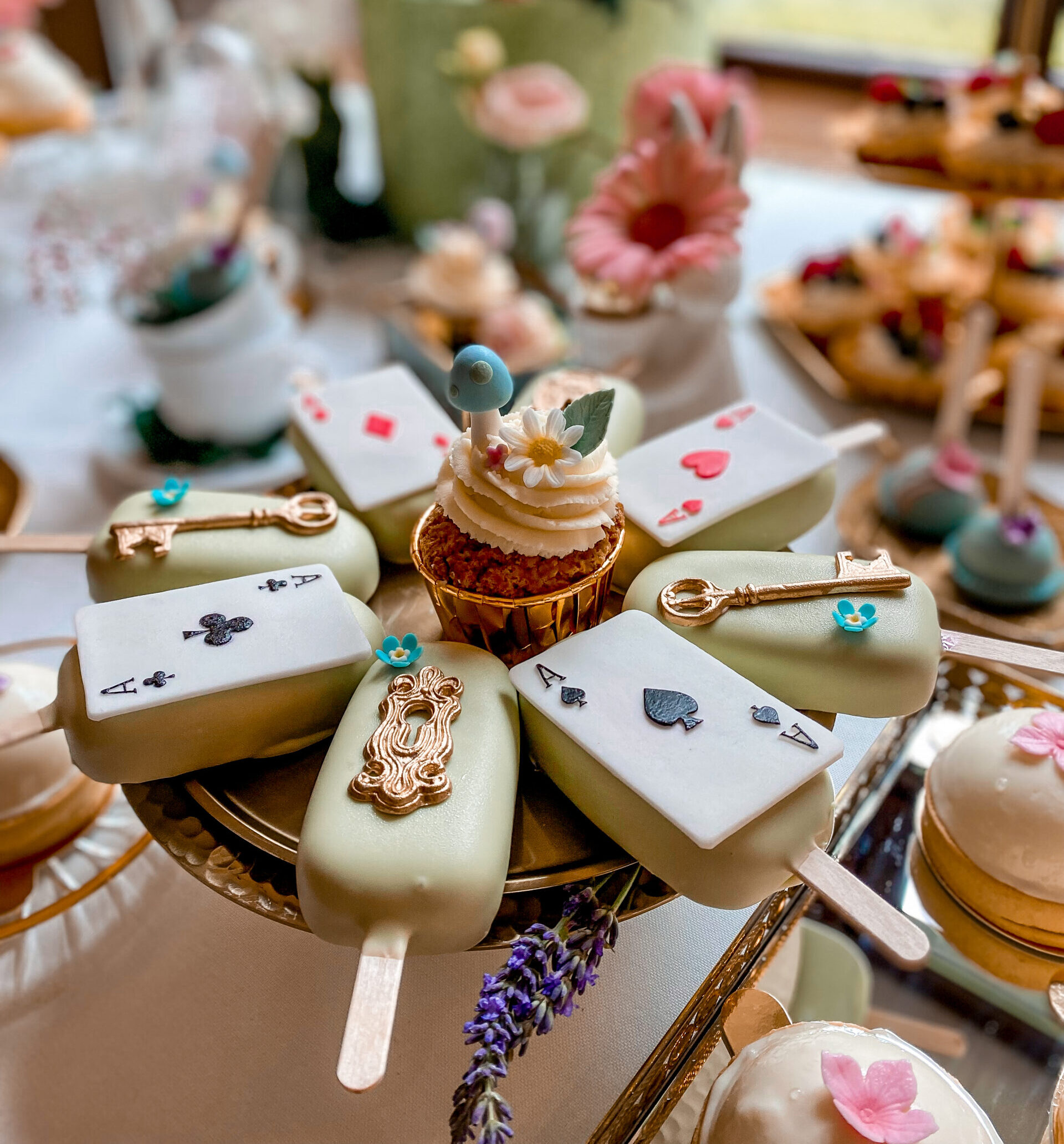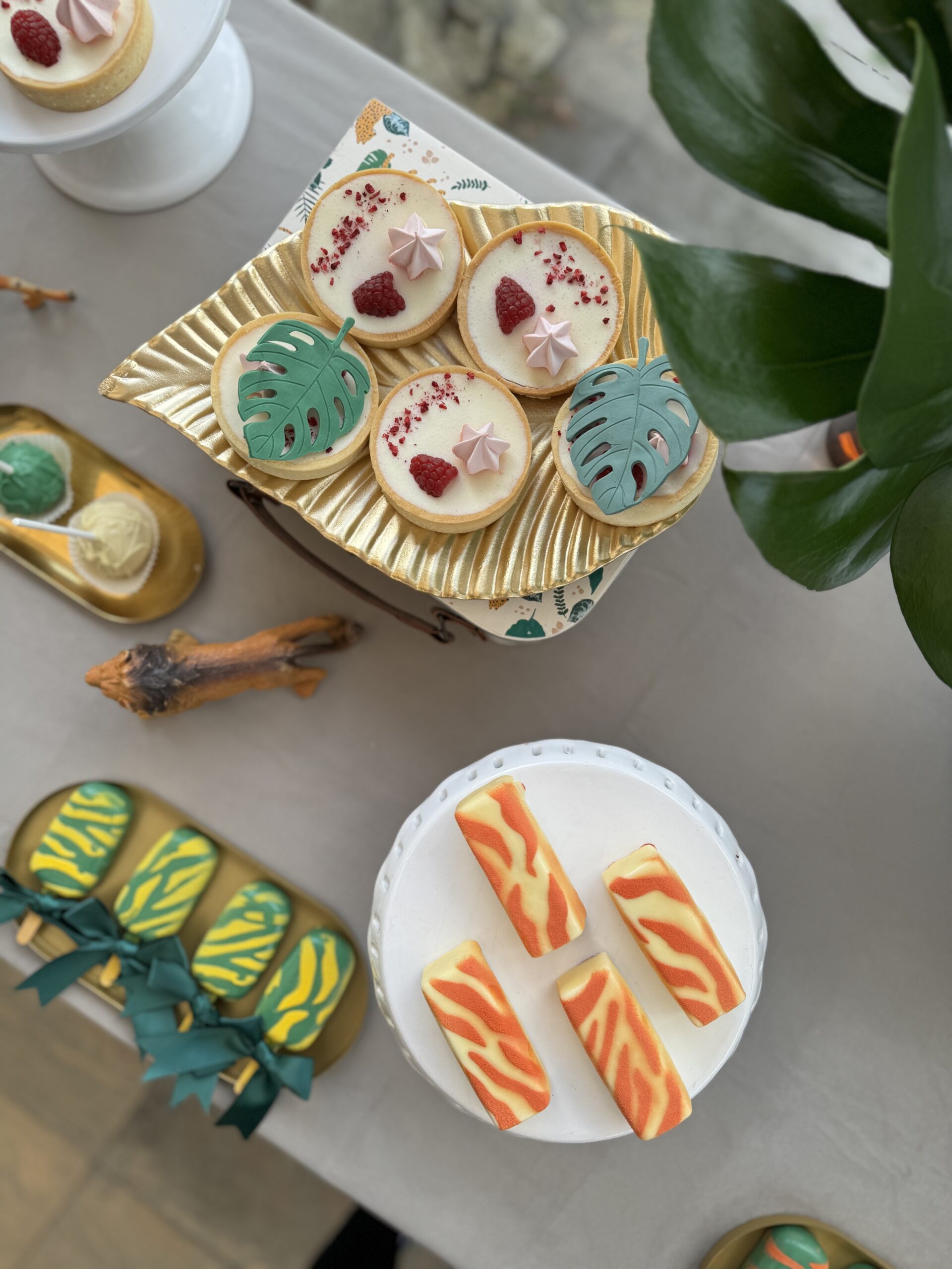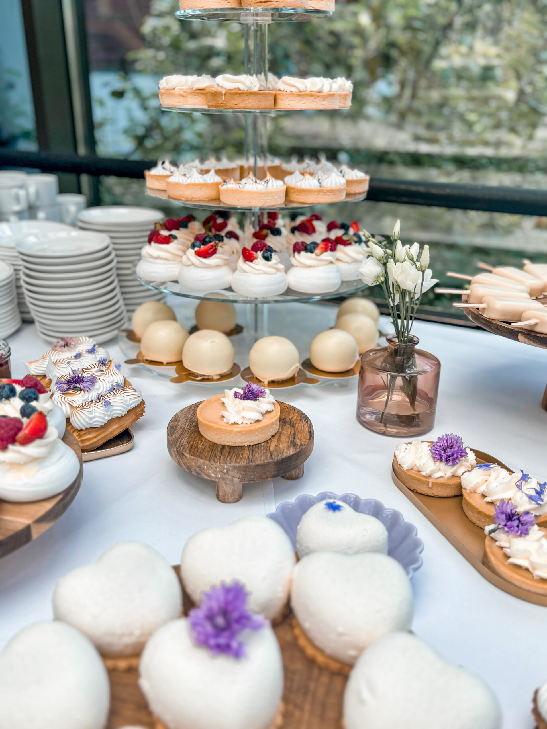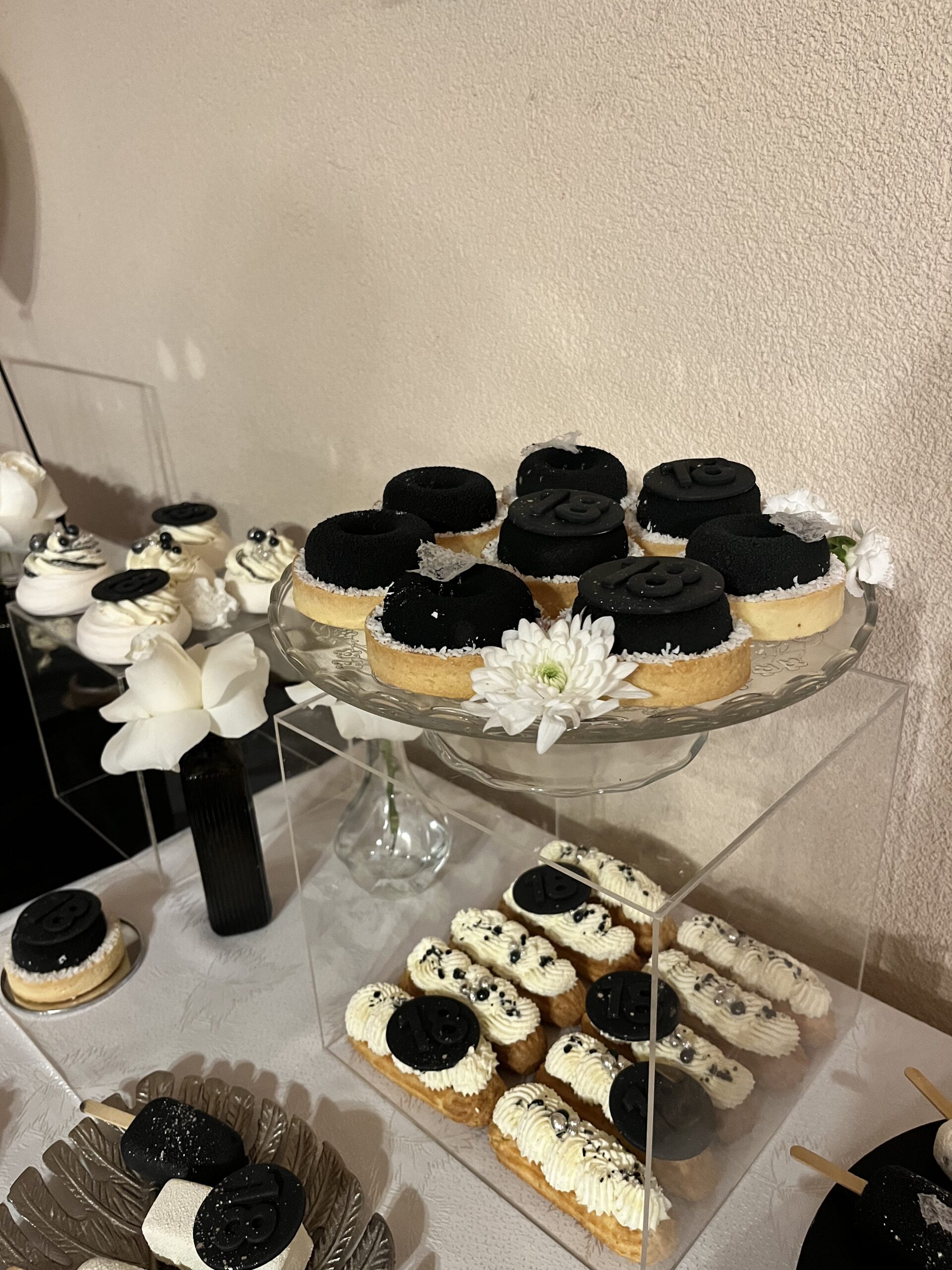 Dekoracje na stołach będą nawiązywać do wybranej palety kolorystycznej – jadalne kwiaty, delikatne złote akcenty oraz transparentne naczynia dodadzą całości lekkiego, ale eleganckiego charakteru. Dzięki temu każdy deser będzie wyglądał jak małe dzieło sztuki.