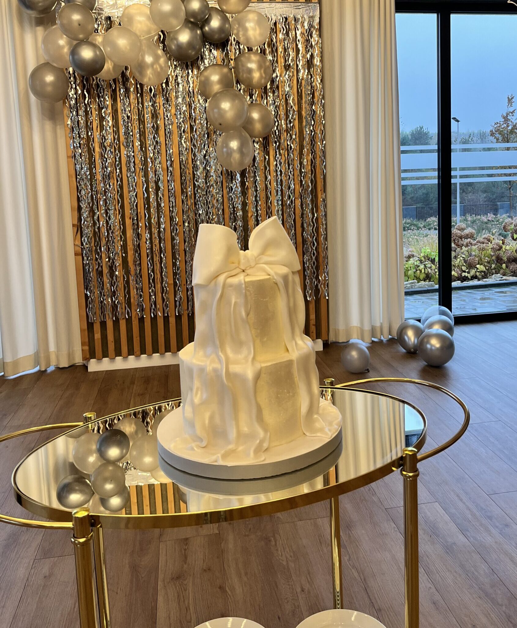 Kokardkowy trend świetnie odnajduje się także na słodkich stołach! 🎀 Wyobraź sobie makaroniki przewiązane cieniutkimi wstążkami, ciasteczka ozdobione cukrowymi kokardkami czy mini torciki z uroczymi dekoracjami. Kokardki mogą być delikatnym akcentem albo głównym motywem przewodnim całego stołu, tworząc spójną, elegancką i nieco bajkową oprawę. W 2025 roku słodkie stoły z kokardkami to kwintesencja uroku, subtelności i stylu!