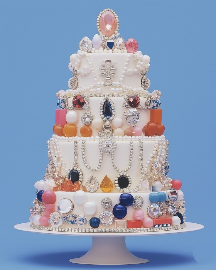 Tort w stylu maksymalistycznym to prawdziwa uczta dla oczu. Złocenia, kryształy, kwiaty, owoce – tu nie obowiązują żadne ograniczenia. Możesz postawić na asymetryczne kształty, torty piętrowe na kryształowych podstawkach albo bogato zdobione monoporcje. Nowością są także torty biżuteryjne – obsypane jadalnymi perłami i kryształkami, które sprawiają, że wyglądają jak dzieło jubilera.